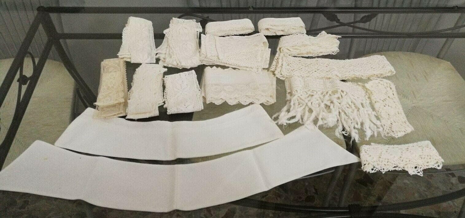 Lotto Pizzo Macramè bordo fascia colletto decorazione Vintage Per mensole, ripiani, tende...